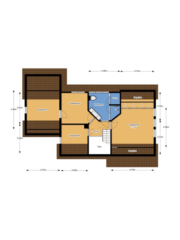 • Via deze slaapkamer wordt de derde slaapkamer bereikt (thans in gebruik als studeerkamer);