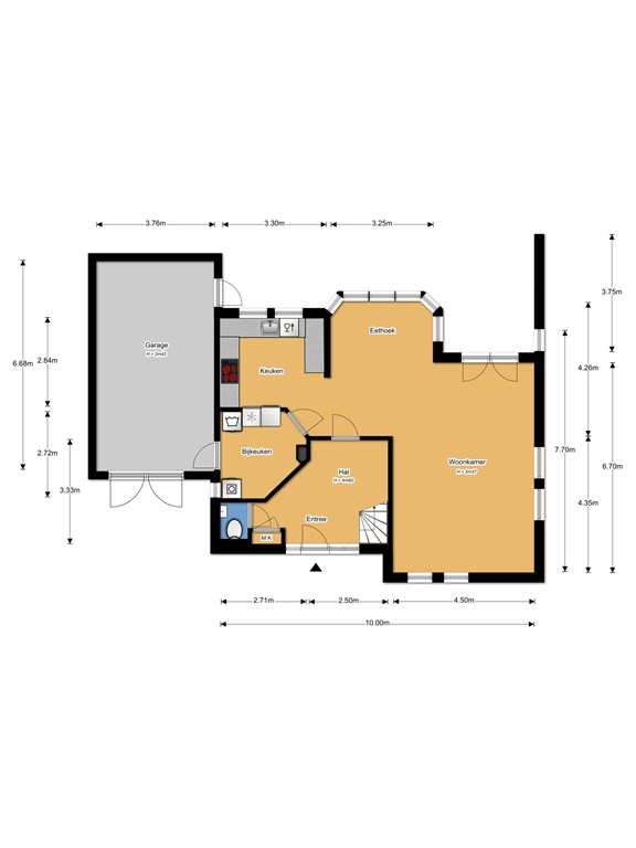 • Ruime hal met meterkast, trap naar de 1e verdieping en toegang naar de woonkamer;