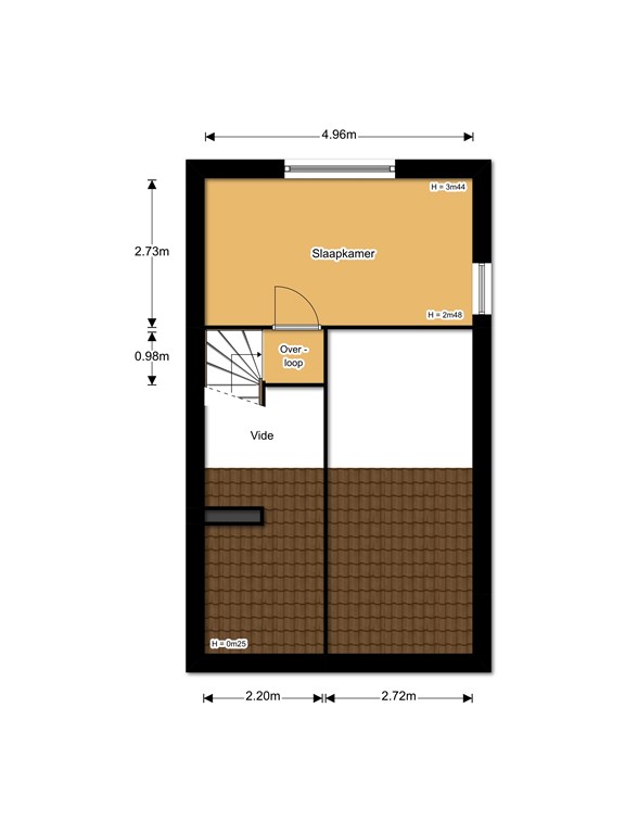 • Vierde slaapkamer (2.73 x 4.96) aan de achterzijde van de woning met oplopend plafond door lessenaarsdak.