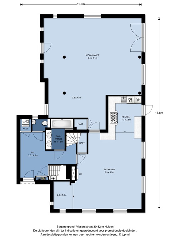 Deze informatie is met de nodige zorgvuldigheid samengesteld. Onzerzijds wordt echter geen enkele aansprakelijkheid aanvaard voor enige onvolledigheid, onjuistheid of anderszins, dan wel de gevolgen daarvan. Alle opgegeven maten en oppervlakten zijn gemeten conform branchebrede meetinstructies (BBMI) afgeleid van de NEN 2580 normering, er kunnen aan deze meting geen rechten worden ontleend. Van toepassing zijn de voorwaarden van VBO.
